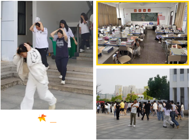 此次演练分时段、分场景有序开展,涵盖消防疏散与防震减灾两大主题,全程贴近真实突发情境,师生们全情投入,展现出高度的安全意识与协作能力。