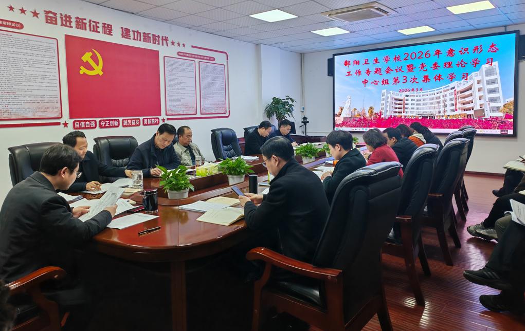 3月11日,鄱阳卫生学校召开2026年度意识形态工作专题(扩大)会议,校班子成员及全体中层干部、教研组长、思政教师和班主任代表参会。会议由党委书记叶超主持。